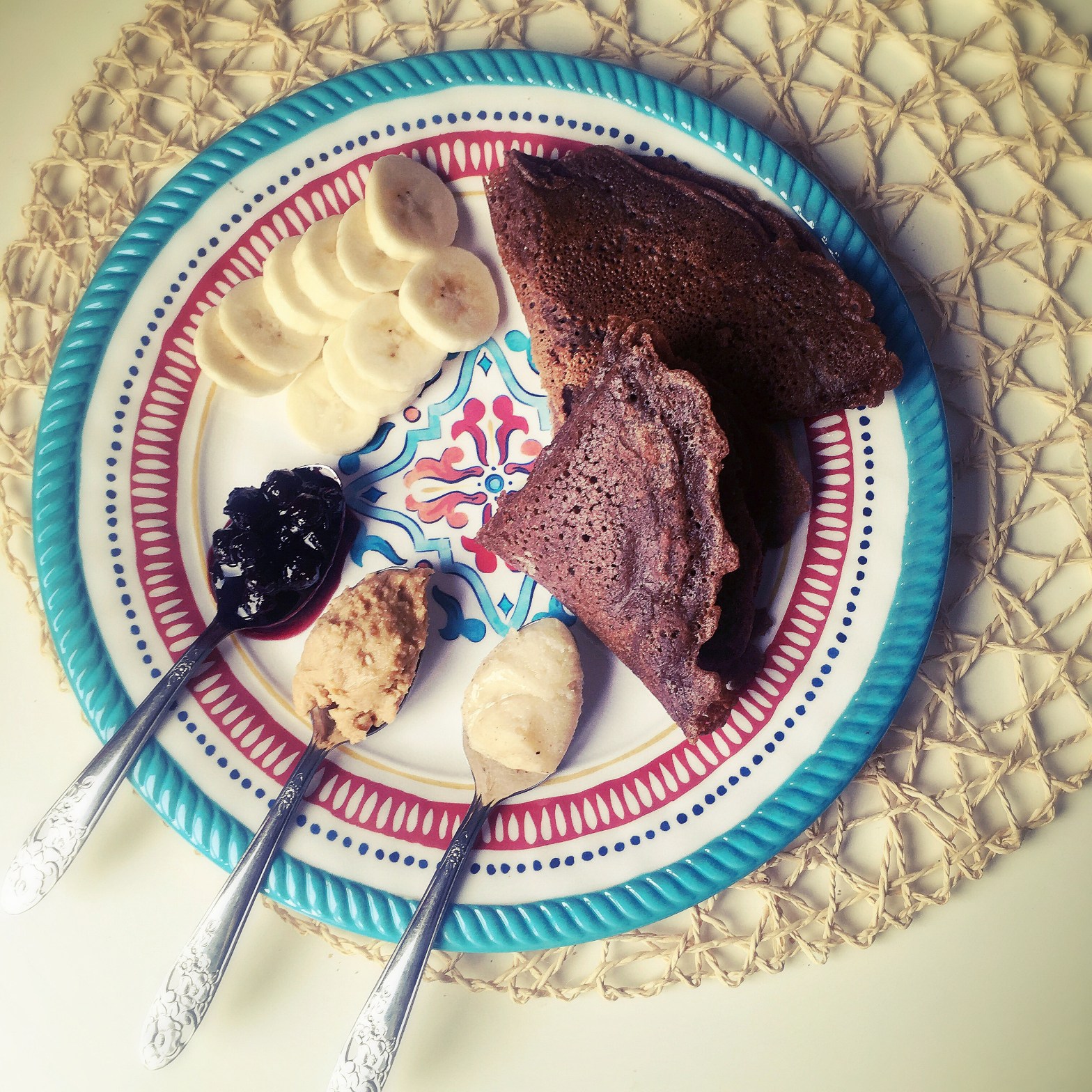 Mix all the ingredients, if the batter it too thick – add more milk. Crepes absorb oil – make sure you put enough on a frying pan. Serve with your favourite fruits, maple syrup or like me: