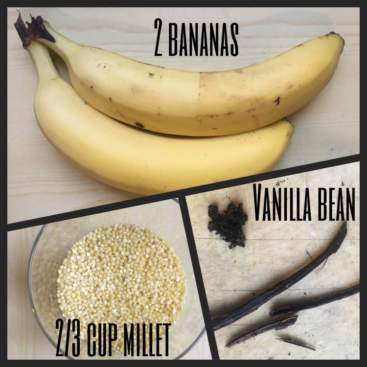 Add bananas, vanilla bean and rest of the coconut milk to the cooked millet and blend it. It takes a while till It’s really smooth.