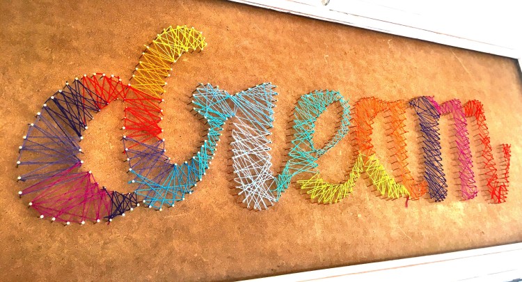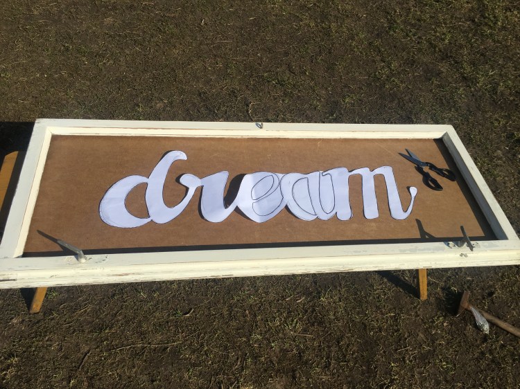 I cut the word ‚dream’ Out of paper and place it on the plywood. Than nails – I think I used 500 or so.