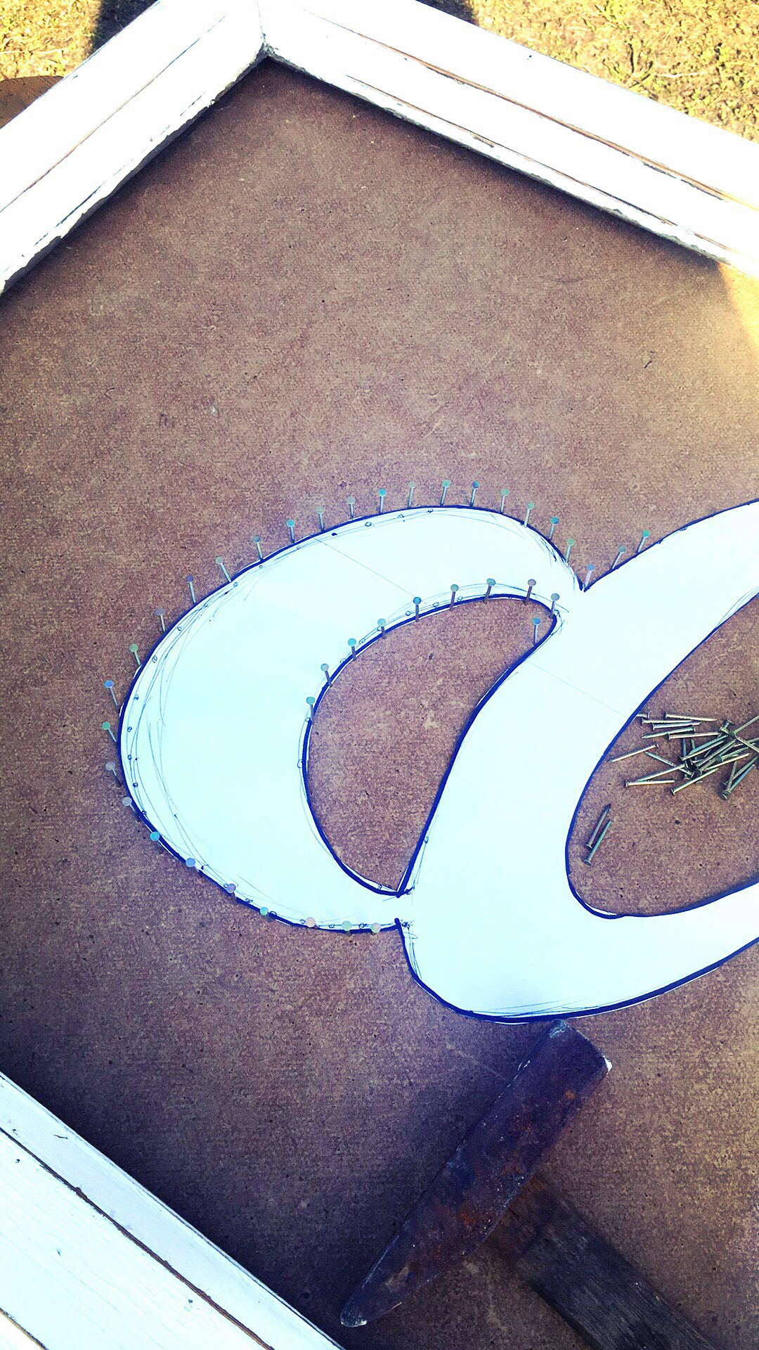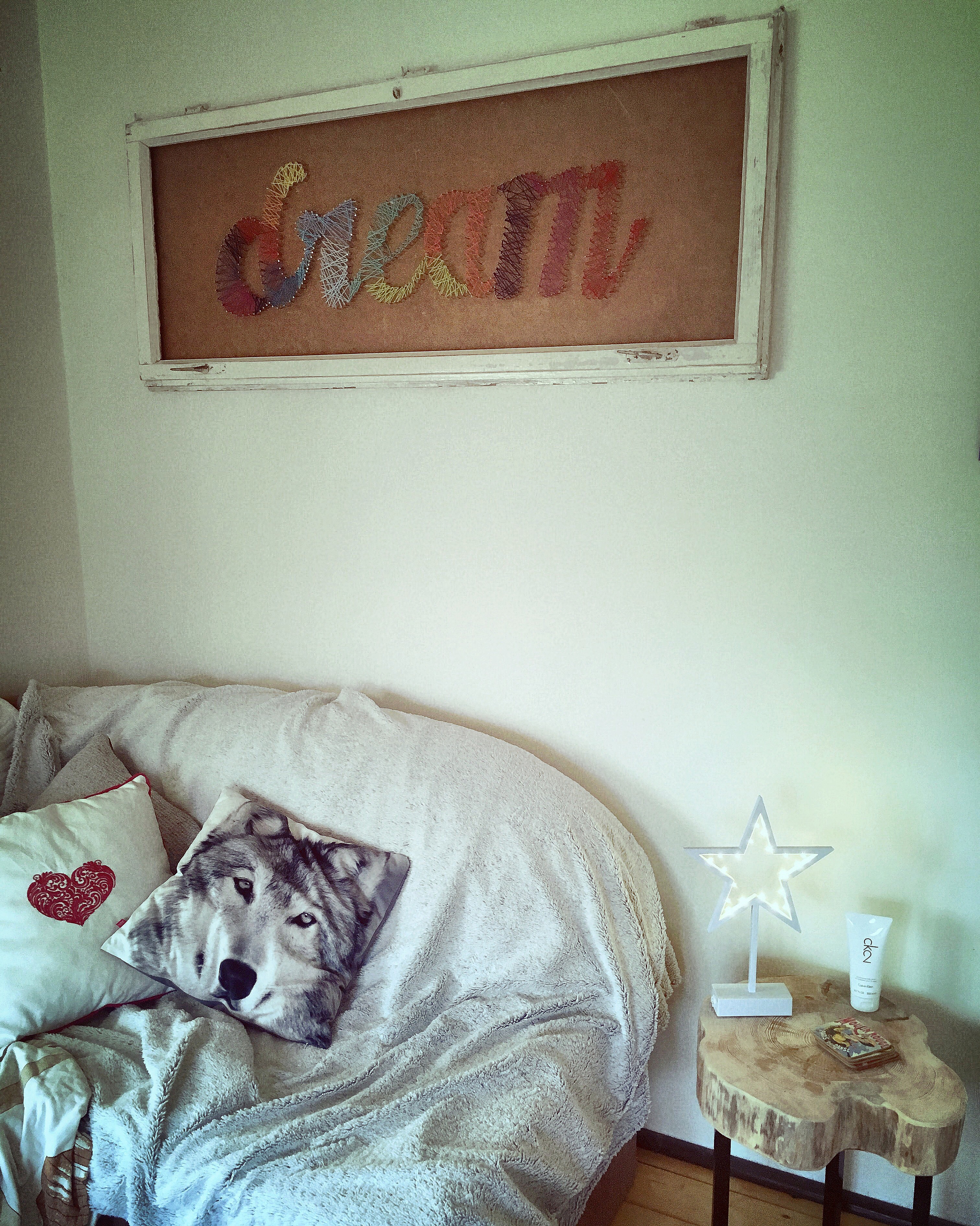 I cut the word ‚dream’ Out of paper and place it on the plywood. Than nails – I think I used 500 or so.