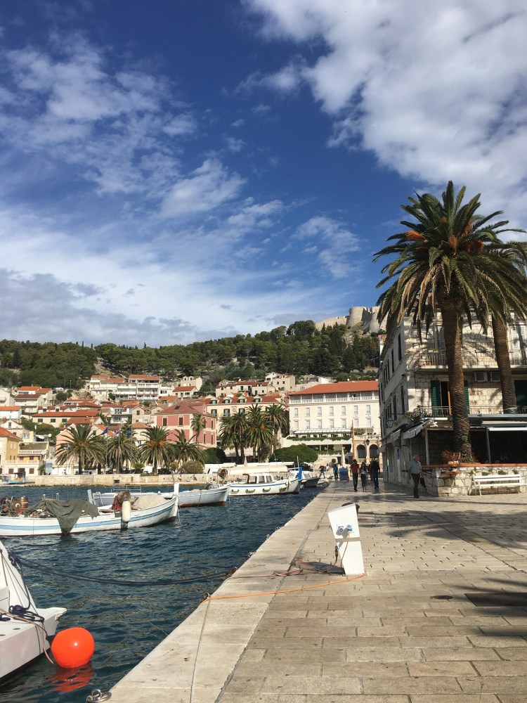 Wyruszamy kolejnego dnia po śniadaniu i jodze. Kierunek Hvar! Choroba morska męczy, awiomarin nie pomaga. 😦 Docieramy do Hvaru – tam nocleg i zwiedzanie. Byłam na tej wyspie 10 lat temu na moim pierwszym rejsie w Chorwacji! Super wspomnienia. Drzewa, na których rosną granaty i limonki. Palmy na tle błękitnego nieba. Klimatyczne kawiarenki i restauracje. Jest super!