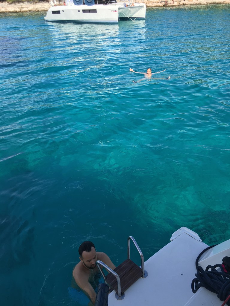 Pogoda była super! Pierwszy tydzień października był dla nas bardzo łaskawy – w zasadzie tylko jeden dzień był deszczowy. Woda ciepła – moim zdaniem cieplejsza niż na Mazurach latem. 😉 Podczas żeglowania trochę wiało i wtedy trzeba było się już cieplej ubrać.
