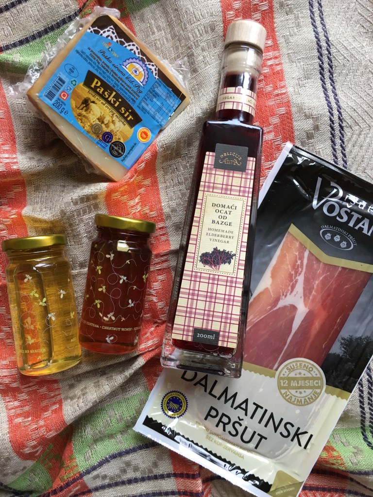 Z każdej podróży przywożę regionalne specjały – dla mamusi szynka (takie chorwackie prosciutto), ciasteczka, ser z mleka owczego z wyspy Pag (pyszny!), miody (akacjowy i kasztanowy) oraz ocet z czarnym bzem – będzie do sałatek.