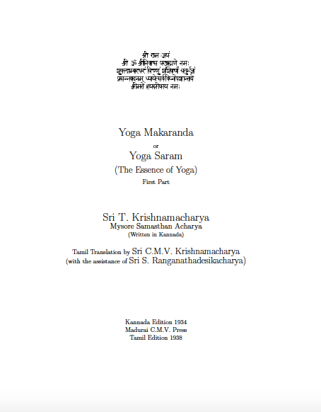 Na pierwszy ogień klasyk – „Yoga Makaranda” autorstwa Sri T. Krishnamacharya z roku 1934. Krichnamacharya to ten, który poukładał asany w serie, które ćwiczymy teraz jako pierwsza seria ashtanga jogi, druga seria ashtanga jogi, itd. – od niego uczył się Pattabhi Jois.