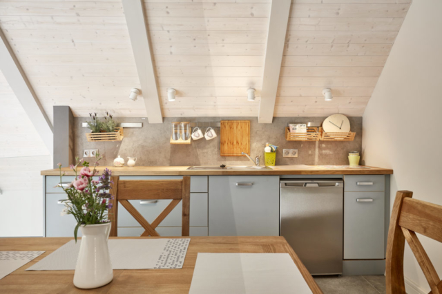 -> New Masuria – Spacious building with a kitchen and dining room downstairs. Upstairs consists of three bedrooms. The interior design is a mix of Scandinavian and rustic.