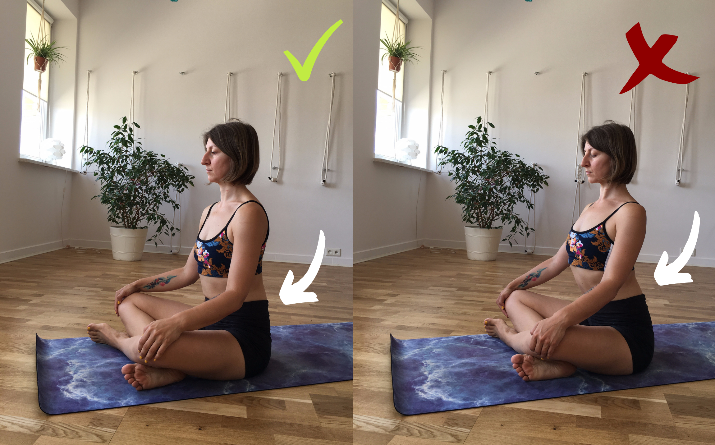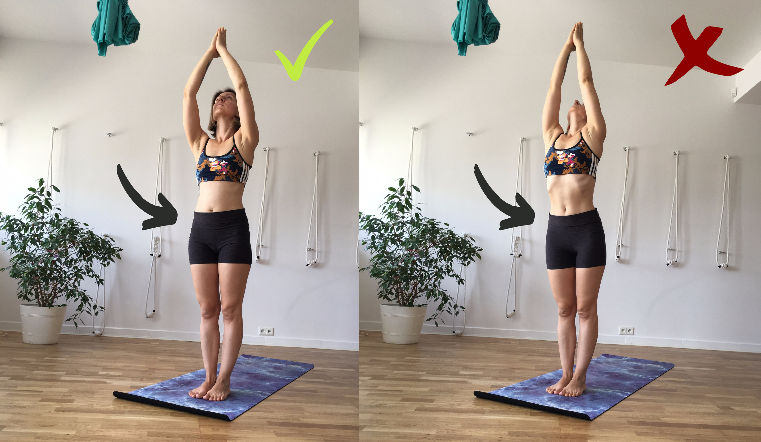 Od kiedy zaczęłam uczyć się o przeponie i oddechu, zmieniło się moje podejście do jogi. Kiedyś byłam bardzo przywiązana do konkretnej wersji asany. Teraz patrzę na pozycję także pod kątem efektywności oddechowej. Sama w swojej praktyce staram się „nie przeginać”, np. nie wypychać żeber do przodu. Oddycham do dolnych żeber, nie wciągam brzucha podczas swojej praktyki. O moich kontuzjach pisałam w innym poście – z perpektywy czasu widzę swoje błędy. Teraz próbuję tovnaprawić. Naprawić oddech! Na ten moment praktykuję z dużą uważnością, szanując swoje granice. Trenuję przeponę. Kilka przykładów, które stosuję na zdjęciach niżej.