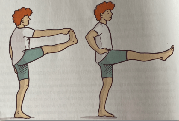 Przykładowe ćwiczenie z treningu mobility, by poćwiczyć aktywne zgięcie stawu biodrowego.: