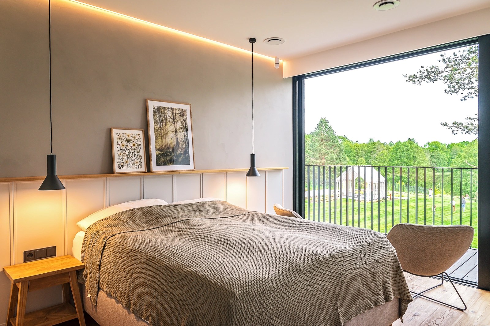 Ośrodek położony nad jeziorem (prywatny pomost). Otwarty w sierpniu 2025r.- ogromna przestrzeń wspólna – salon z kominkiem i jadalnia, duże tarasy, miejsce na ognisko, altana, sauna z widokiem na jezioro. Kosmetyki marki Rituals w pokojach. Kawa i herbata dostępna cały dzień. Kajak i SUPy w cenie.