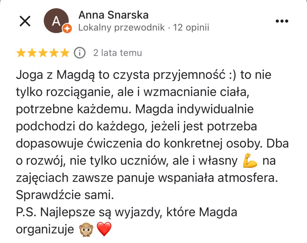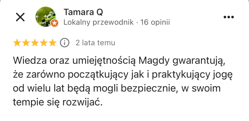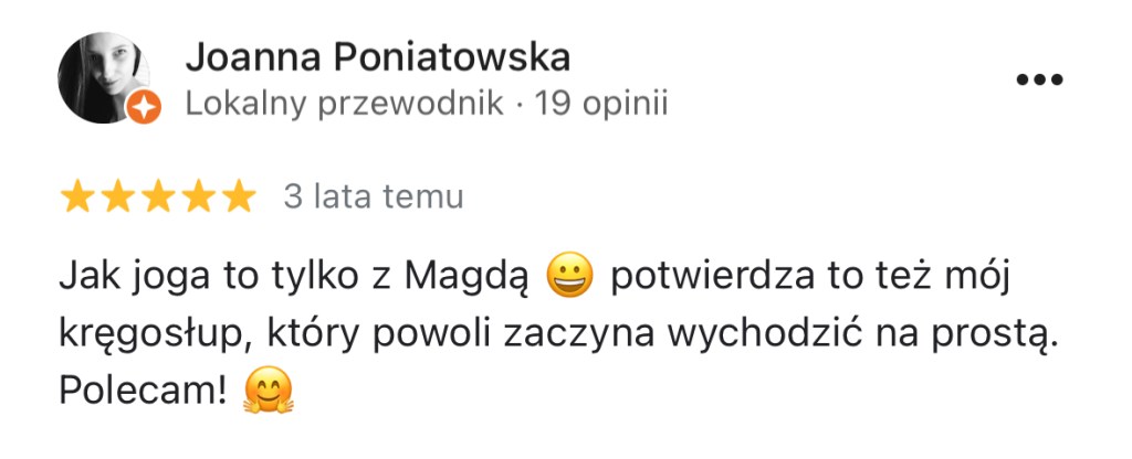 Cześć! Jestem Magda – jestem nauczycielką jogi i trenerką personalną. W Wasilkowie uczę od marca 2021 roku. Pracujemy w kameralnej fajnej grupie dojrzałych osób, którzy przyjmą Cię z otwartością.